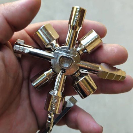 Cet outil est une Clé d’Armoire Électrique Multifonction 10-en-1 (souvent appelée « Clé en étoile » ou « Clé de service universelle »). C’est le couteau suisse indispensable pour les techniciens et les agents de maintenance.